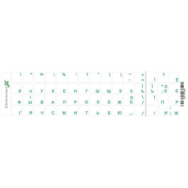 Наліпки на клавіатуру Grand-X Protection 60 keys Cyrillic Transparent/Green (GXTPGW)