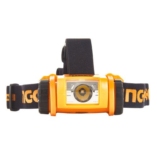Налобний ліхтар INGCO HHL013AAA2 INDUSTRIAL оснащений вбудованим світлодіодом CREE XP-E2 R3. Мінімальний світловий потік 50 лм. Максимальний світловий потік 200 лм. Максимальна дальність променю 91 м. Ступінь захисту IPX-4. Як джерело живлення використовуються 3 батарейки ААА.
