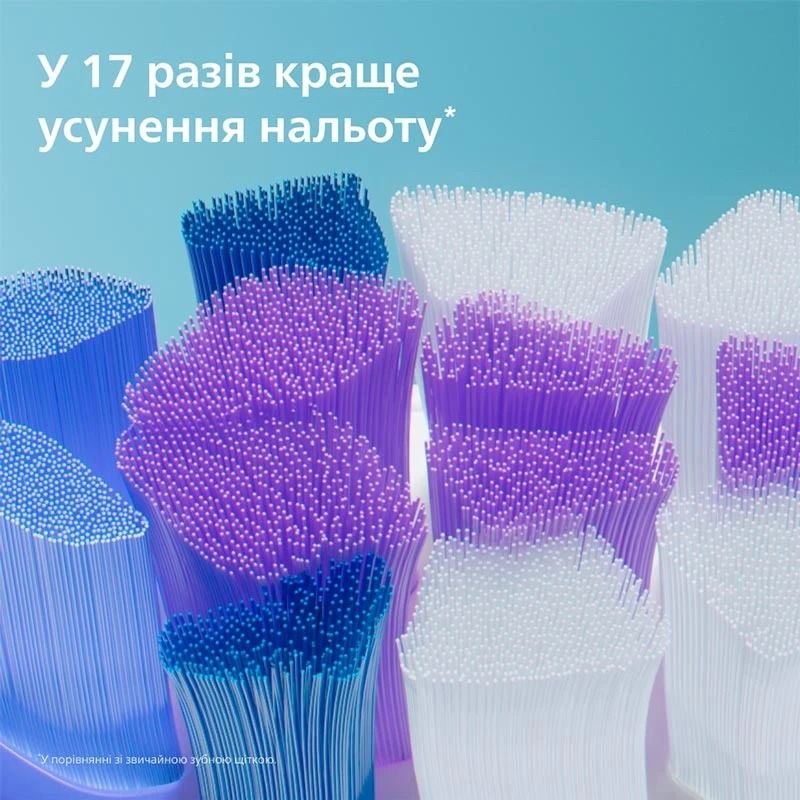 Насадка має понад 3000 надтонких щетинок і розроблена для надзвичайно м’якого, але ефективного чищення, усуваючи в 17 разів більше нальоту.