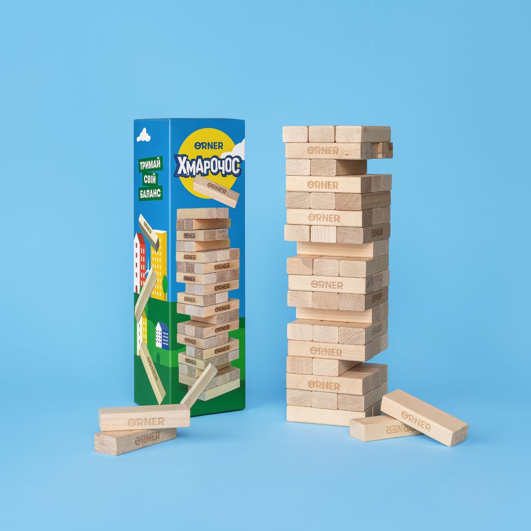 Гра дженга «Хмарочос» ЕКО — маленьке випробування: спритності, рішучості, вмінню балансувати. Ну і, звісно, вмінню дихати не дихаючи. Жартуємо! Дихайте на повні груди.