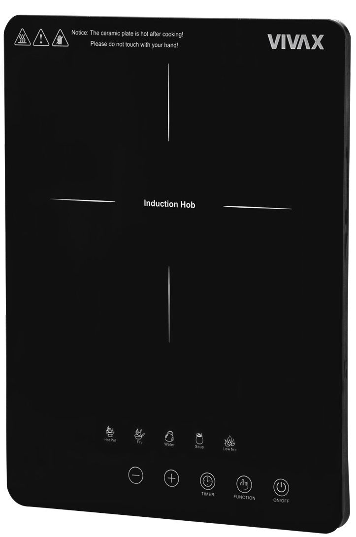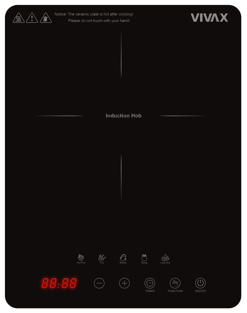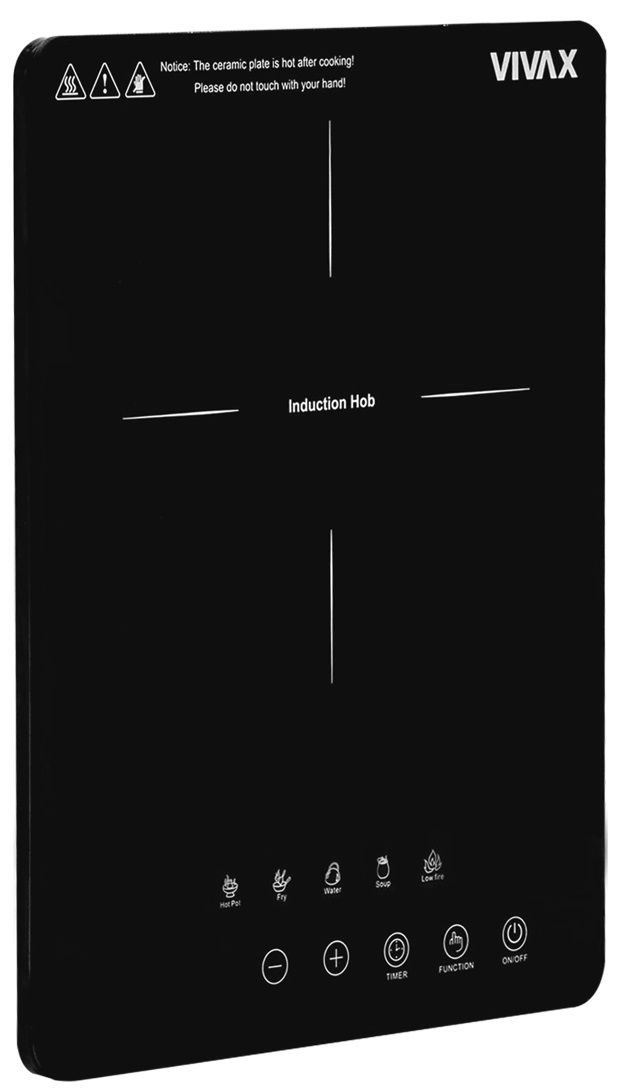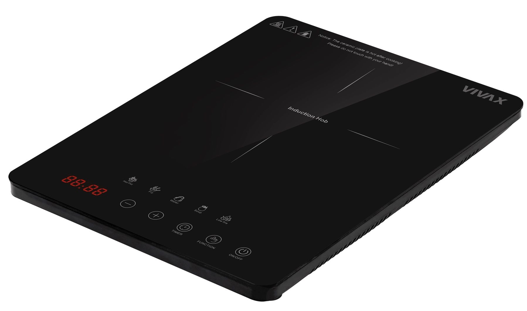 Індукційна плита VIVAX HPI-2000TP заощаджує місце. Це тонка портативна індукційна плита потужністю 2000 Вт із сенсорним керуванням. Індукційна плита має вбудовану функцію таймера (від 1 до 4 годин) з автоматичним вимкненням та 5 встановлених функцій приготування. На світлодіодному дисплеї плати відображаються індикатори живлення, часу та температури.