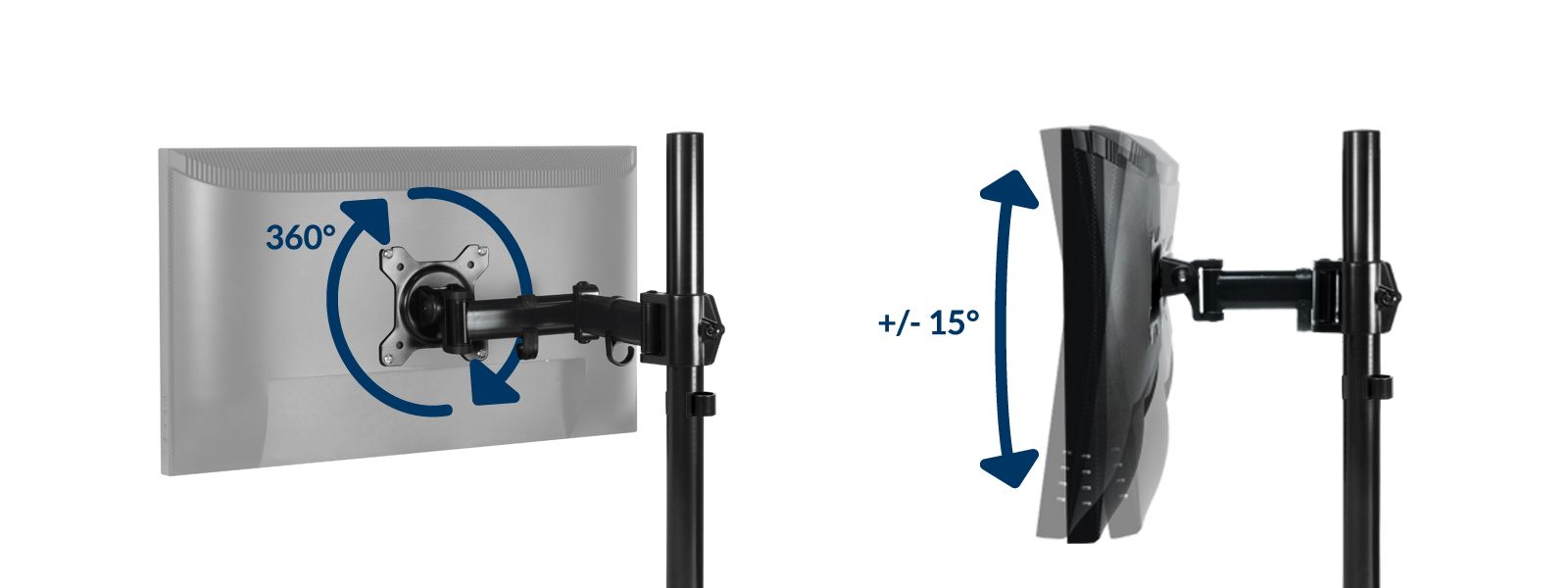 Кріплення дозволяє налаштувати монітор відповідно до ваших потреб — поворот на 360° та нахил на +/- 15° забезпечують максимальний комфорт.