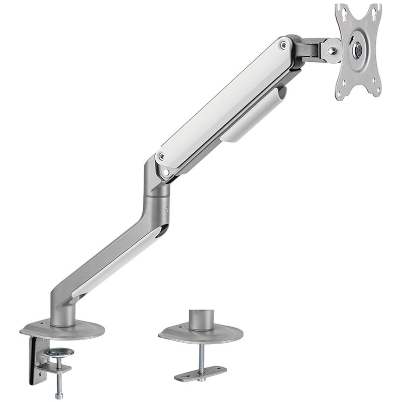 Кронштейн для монітора HS082444 - це економічний вибір для забезпечення гнучкості та ергономічності робочого місця. Міцна конструкція зі сталі та алюмінію підтримує більшість 17-32-дюймових моніторів вагою до 9 кг/19,8 фунтів. Регулювання пальцями дозволяє легко маневрувати та має широкий діапазон руху для встановлення висоти та кута нахилу екрану. Вбудований обмежувач повороту на 180° запобігає ударам кронштейна об сусідні перегородки та стіни. Конструкція швидкознімного шарніра зменшує розмір упаковки, що знижує витрати на транспортування та зберігання, а також сприяє простоті збирання. Тонкий та сучасний дизайн підходить до будь-якого офісного чи домашнього інтер’єру.