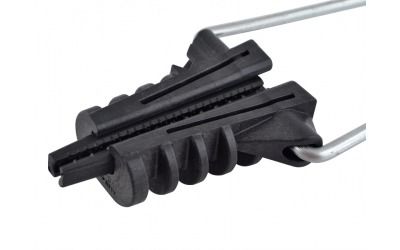 Затискач Зуб-14 виготовлений з міцного стійкого пластику до впливу УФ випромінювання і перепадів температур. Кріпильну петлю із сталевого оцинкованого дроту O4,2 мм за необхідності можна зняти, що забезпечує додаткову зручність у монтажі. Петлю можна кріпити на гаки чи скоби з діаметром отвору від 5 мм. Спеціальний напрямний паз у корпусі затискача спрощує встановлення кріпильної петлі на своє місце. Затискні клини оберігаються від випадання спеціальними напрямними в затиску та фіксуючими виступами на клинах.