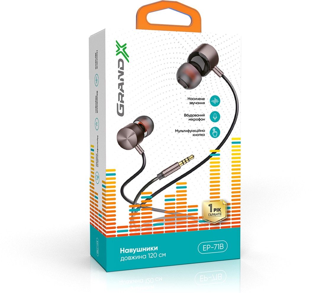 Навушники Grand-X EP-71 поєднують у собі гарну якість звучання, чудову портативність та доступну ціну. Підключення за допомогою стандартного Jack 3.5 мм дозволяє використовувати навушники не тільки зі смартфоном або ПК, але й з будь-яким іншим пристроєм із відповідним портом.