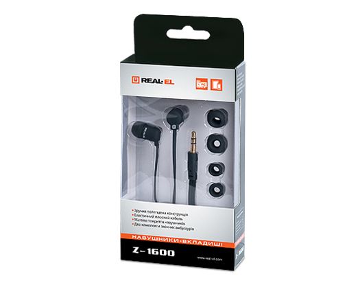 Навушники REAL-EL Z-1600 - це зручні навушники-вкладиші зі збалансованим якісним звучанням в металевому корпусі. Навушники призначені для роботи зі звуковими картами ПК та іншими сумісними з ними системами (портативними програвачами, комп"ютерними ігровими приставками і т. п).