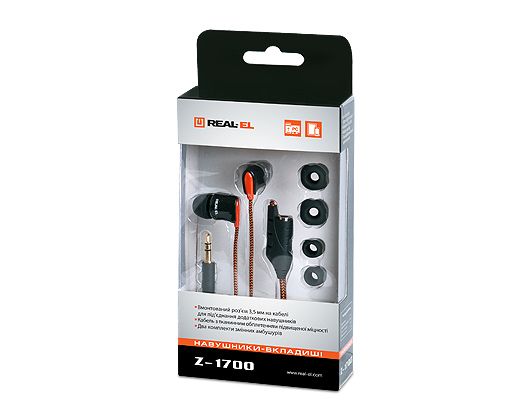 Навушники REAL-EL Z-1700 - це стильні і зручні навушники-вкладиші зі збалансованим якісним звучанням. Навушники призначені для роботи зі звуковими картами ПК та іншими сумісними з ними системами (портативними програвачами, комп"ютерними ігровими приставками і т. П). Завдяки оптимальному співвідношенню технічних характеристик і якісних матеріалів, які використовувалися при створенні даної моделі, ці навушники відмінно підійдуть для всього спектру мобільних пристроїв, оснащених портом 3,5 мм. Варто відзначити, що дана модель оснащена вбудованим роз"ємом 3,5 мм на кабелі для підключення додаткових навушників. А сам кабель з тканинним обплетенням підвищеної міцності.