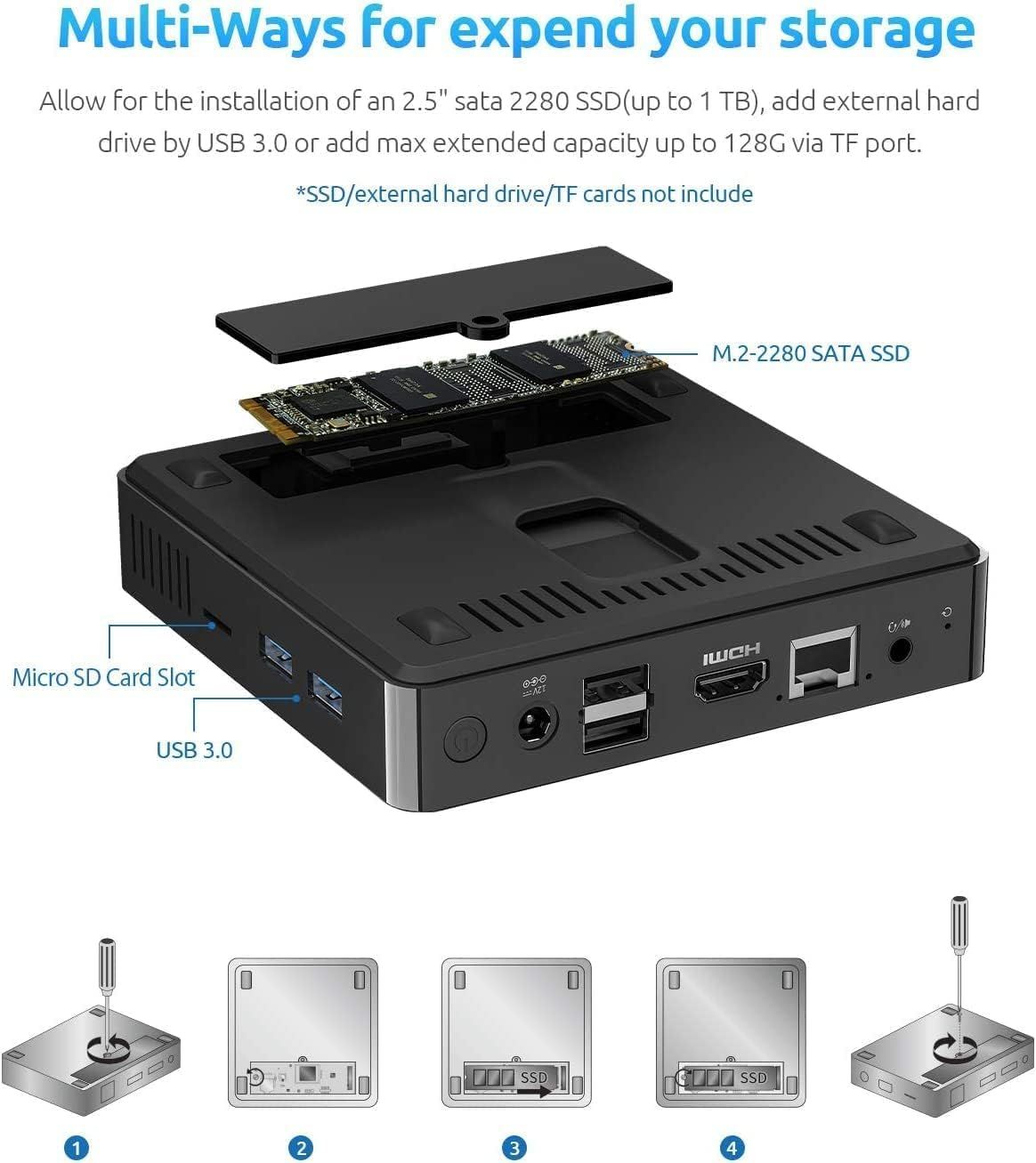 Міні ПК постачається з 8 ГБ DDR4 і 128 ГБ SSD, ви також можете під’єднати зовнішній жорсткий диск через 2 порти USB 3.0. Насолоджуйтесь високою швидкістю обміну файлами, онлайн-іграми та інтернет-серфінгом. Настав час звільнитися від громіздкого робочого столу.