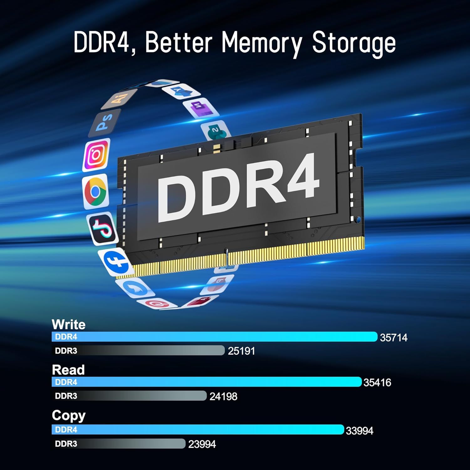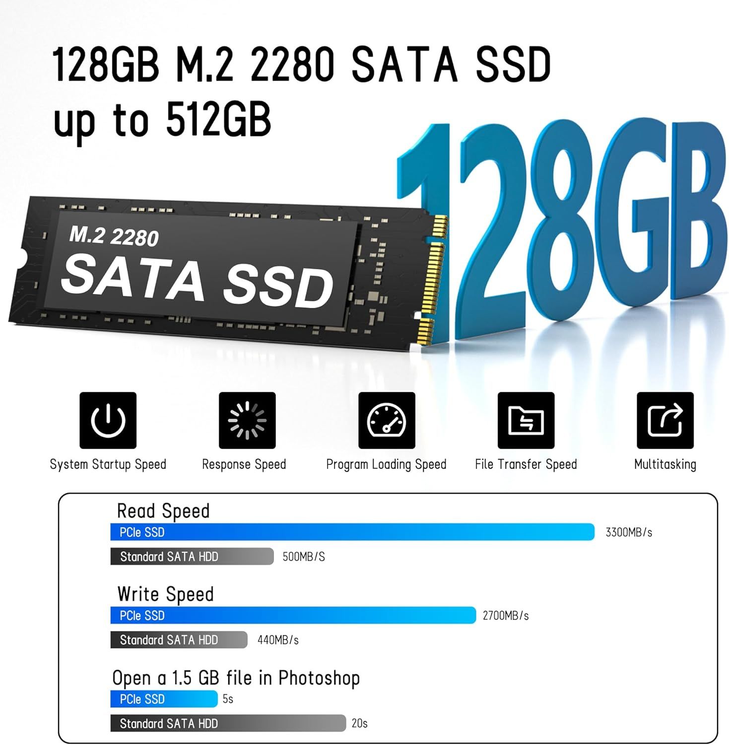Міні-ПК Golite 11 Windows 11 Pro оснащений 6 ГБ вбудованої двоканальної пам’яті LPDDR4, яка забезпечує більш плавні обчислення і більш швидкий час зарядки в порівнянні з DDR3. Він також підтримує розширення до 512 ГБ. Комплектний твердотільний накопичувач M.2 SATA ємністю 128 ГБ забезпечує вищу швидкість роботи порівняно з традиційним жорстким диском (HDD).