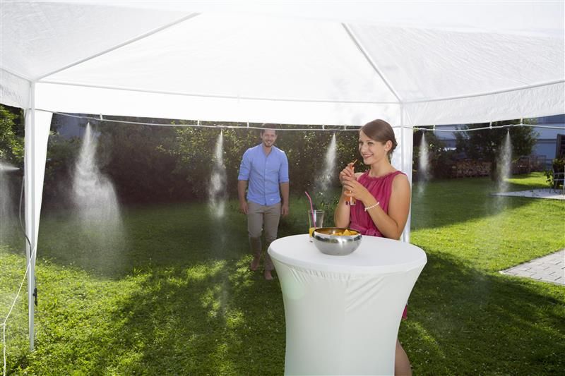 Набір для створення дрібнодисперсного туману GARDENA MicroMist допоможе Вам охолонути на вулиці у спекотні дні. Форсунки створюють дрібний туман, який робить навколишнє повітря приємно прохолодним, охолоджуючи довкілля на 1…6 градусів. Вода настільки дрібно розпилюється, що висить у повітрі, як прохолодна вуаль.