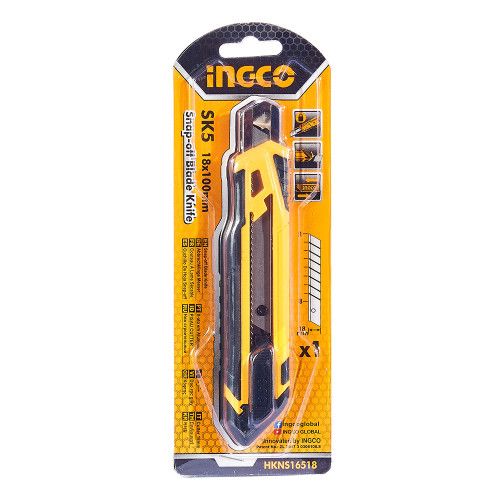 Ніж з сегментним лезом 18 мм INGCO призначений для розрізання паперу, картону, покриття для підлоги й інших матеріалів.