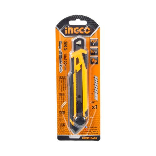 Ніж з сегментним лезом і фіксатором 18 мм INGCO призначений для розрізання паперу, картону, покриття для підлоги й інших матеріалів.