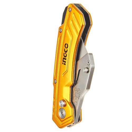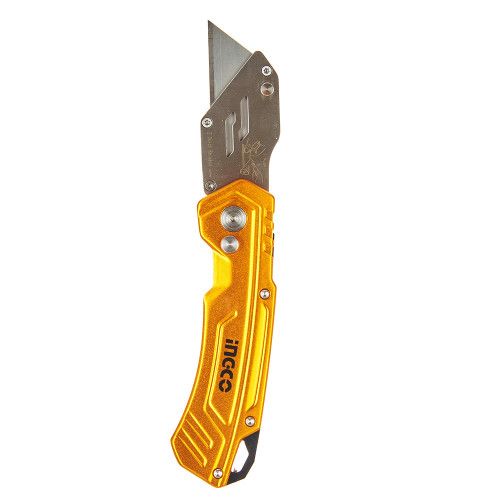 Ніж складаний з нержавійної сталі, 6 лез трапеція SK5 INGCO - це універсальний інструмент, що має широку сферу застосування - за допомогою нього можна швидко та акуратно розрізати такі матеріали, як лінолеум, картон, шпалери та ін.