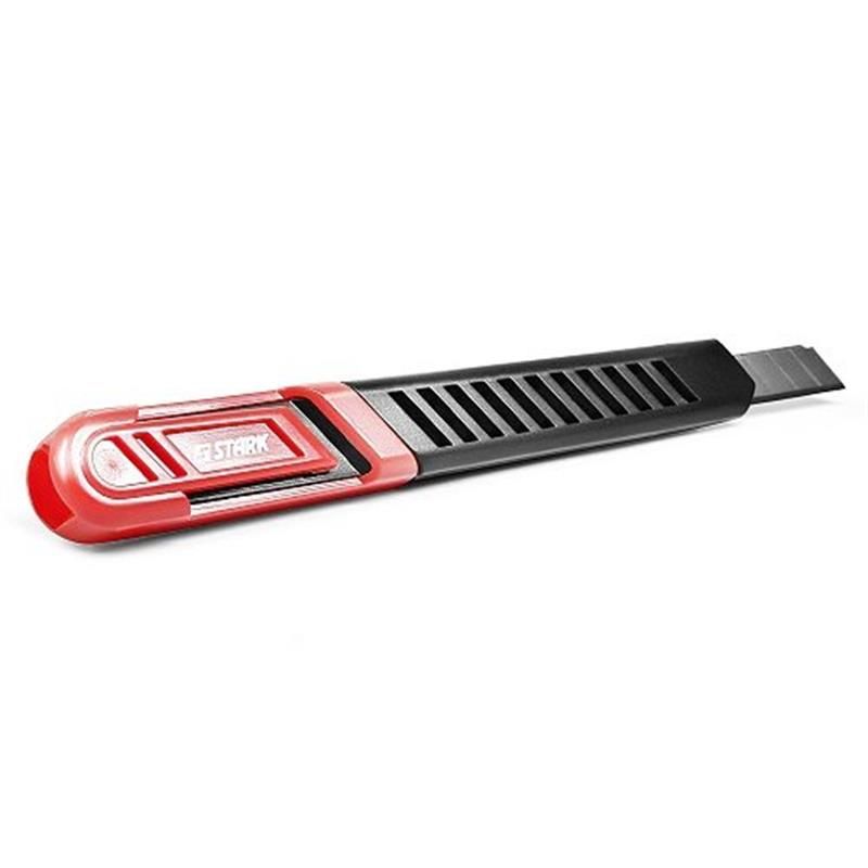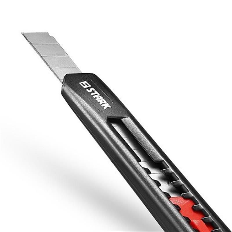 Stark 125 мм - компактний сегментний ніж для виконання будівельних і ремонтних робіт, дозволяє різати різного роду матеріали: гумові, картонні, матерчаті, пластикові та ін. Завдяки невеликим розмірам ножем легко працювати в важкодоступних місцях, не займає багато місця в інструментальному валізі. Лезо виготовлено з якісної високовуглецевої сталі легко висувається і автоматично фіксується. Лезо має 13 позицій.