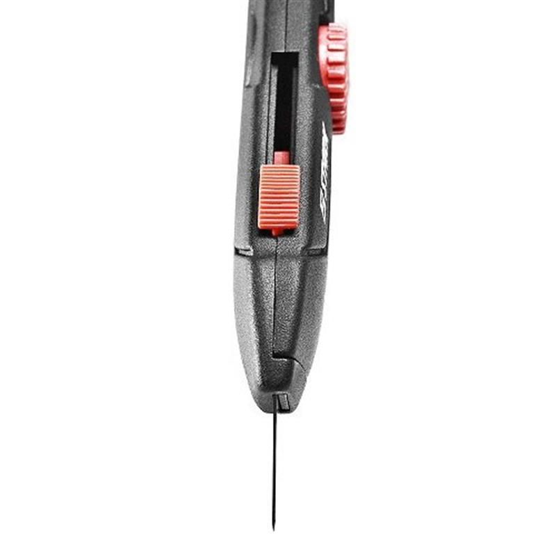 Обладнаний надійним металевим корпусом, який не боїться ударів і падінь. На корпусі передбачена осередок для зберігання лез, які будуть завжди під рукою завдяки легкому доступу до лез. Також є отвір, яке дозволяє швидко відрізати стрічки, мотузок, джгутів та ін.