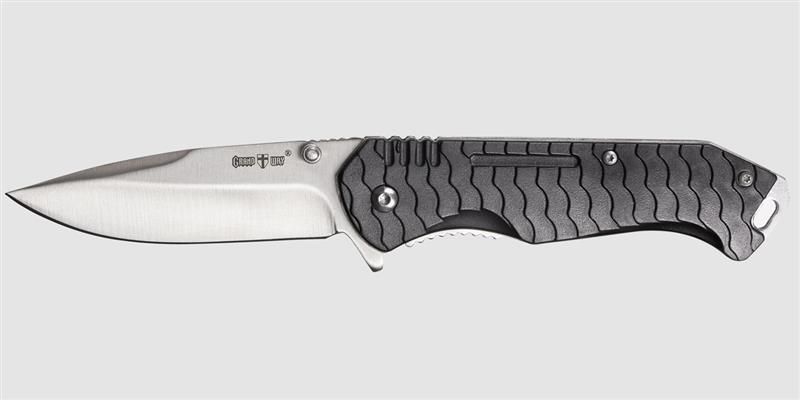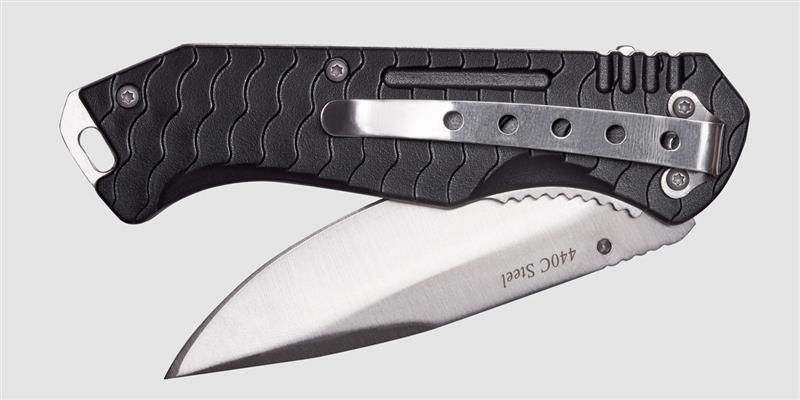 Два способи розкладання: за допомогою шпеньков, і набагато швидший, за допомогою виступу-плавця на клинку. Клинок має фіксатор, який унеможливлює випадкове складання леза.