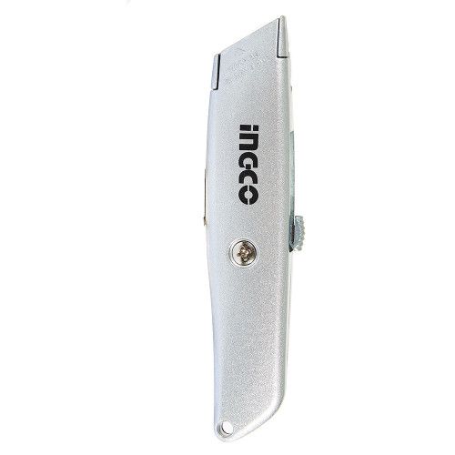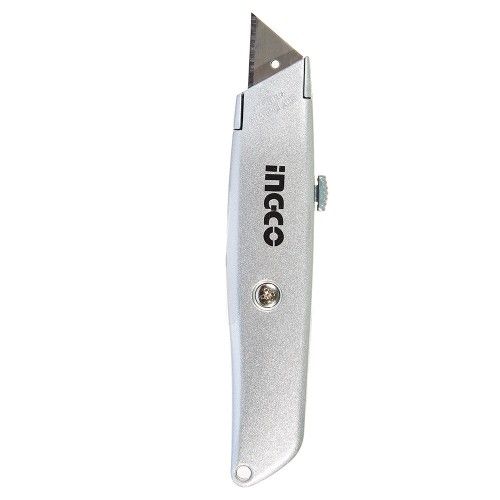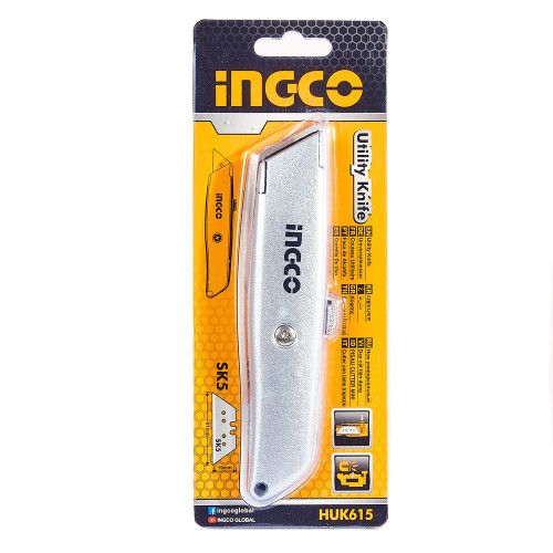 Ніж із висувним лезом INGCO HUK615 — універсальний інструмент, має широку сферу застосування. Ножем можна швидко й акуратно розрізати лінолеум, картон, шпалери та інші матеріали. Оснащений лезом із вуглецевої сталі SK5. Має функцію самоблокування. Корпус із цинкового сплаву захищає від різних механічних впливів і гарантує тривалу службу. У комплекті є 1 лезо.