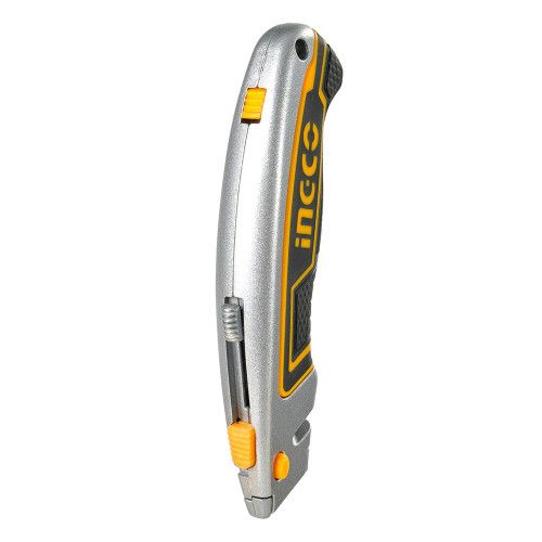 Ніж трапеція "Profi" 6 лез SK5 INGCO INDUSTRIAL — це універсальний інструмент, який має широку сферу застосування. З його допомогою можна швидко й акуратно розрізати такі матеріали, як лінолеум, картон, шпалери та ін.