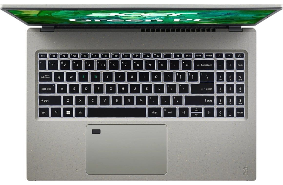 Відданість Acer ідеї екологічно відповідального дизайну проявляється в Aspire Vero. Вживаємо заходи щодо зменшення нашого вуглецевого сліду шляхом переробки та повторного використання брухту, що створюється під час виробництва, а також використання упаковки, на 100% придатної для переробки.