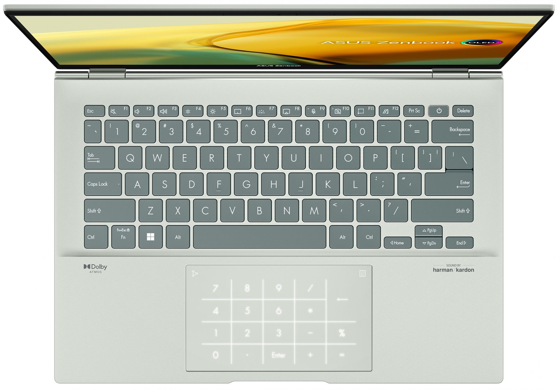 Джерелом натхнення для сміливого нового дизайну кришки стала вічна класика – традиційна японська техніка «кінцуґі». Кришка доступна у двох нових свіжих кольорах: задумливий синій (Ponder Blue) та зелений селадон (Aqua Celadon). Zenbook 14 OLED – це новий еталон портативної досконалості.