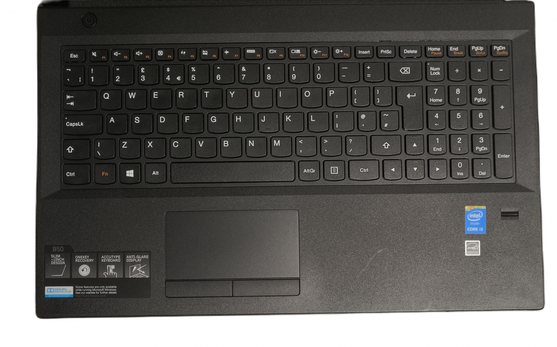 Ноутбук Lenovo IdeaPad B50-80 (LIPB5080E910); 15,6" (1366x768) LED матовий / Intel Core i3-5005U (2,00 GHz) / 4GB RAM / 500GB HDD / Intel® HD Graphics 5500 / DVD-RW / LAN / Wi-Fi / Bluetooth / Webcam / Windows 10 / сканер відбитку / 1.8 кг, Б/в