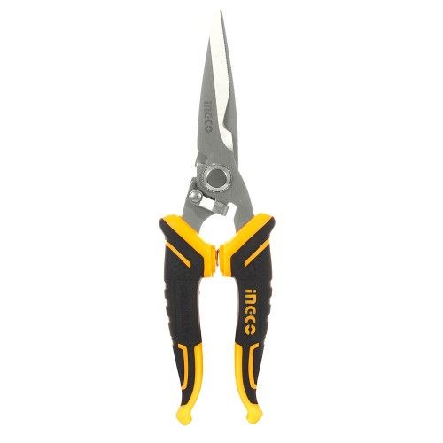 Універсальні ножиці 200 мм INGCO HES0188 мають зазубрене лезо з нержавіючої сталі. Цей зручний ручний інструмент придатний для різання найрізноманітніших матеріалів.