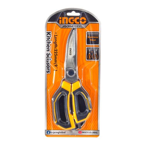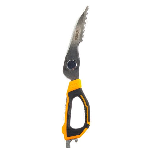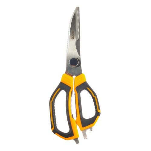 Ножиці універсальні багатофункціональні 225 мм INGCO — незамінний багатофункціональний інструмент на вашій кухні, який підійде для розрізання різних продуктів, чищення риби, відкривання банок і пляшок, а також розколювання горіхів.