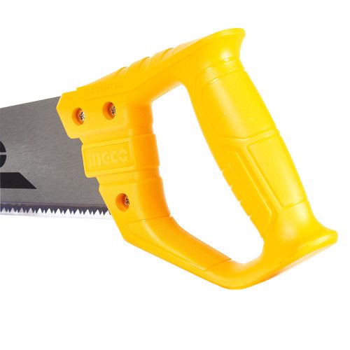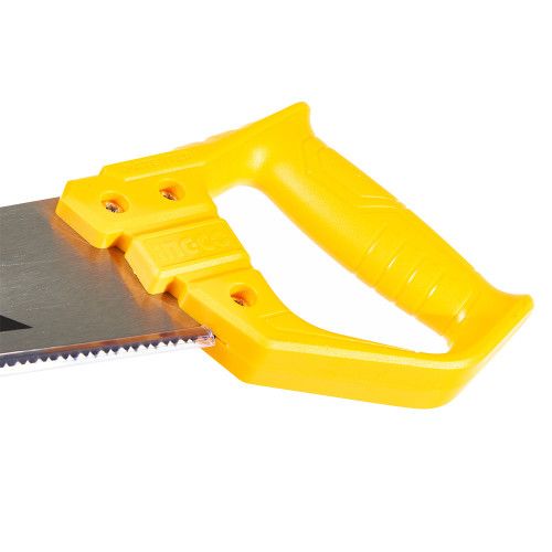 Ножівка по дереву INGCO HHAS48400 призначена для розпилювання дерев’яних деталей. Виготовлене з двокомпонентного матеріалу руків’я зручно розміщується в руці. Особливе заточування зубів із частотою 7 на дюйм забезпечує чистий і якісний різ. Пиляльне полотно виготовлене з вуглецевої сталі марки 65Mn. Довжина ножівки 400 мм, товщина 0,9 мм.