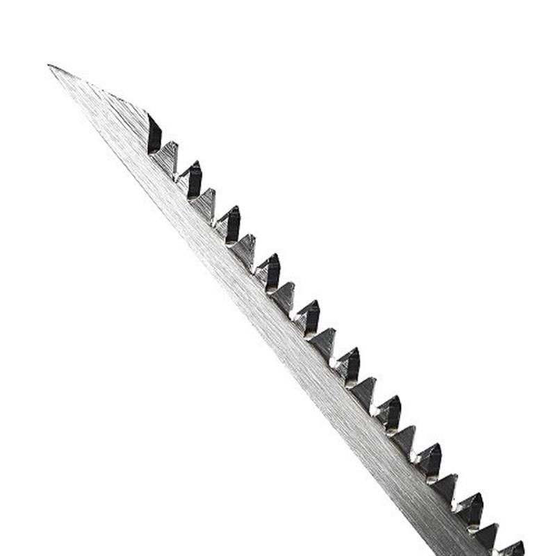 Полотно виготовлене з висококарбоновой стали 65 HCS товщиною 0,9 мм, що забезпечує міцність і стійкість під час роботи, а також має довгий термін служби. Зуби при виготовленні пройшли термічну загартування і потрійну заточку для швидкого пиляння без зазубрин. Розведений тип зубів для запобігання тертя об стінки пропилу.