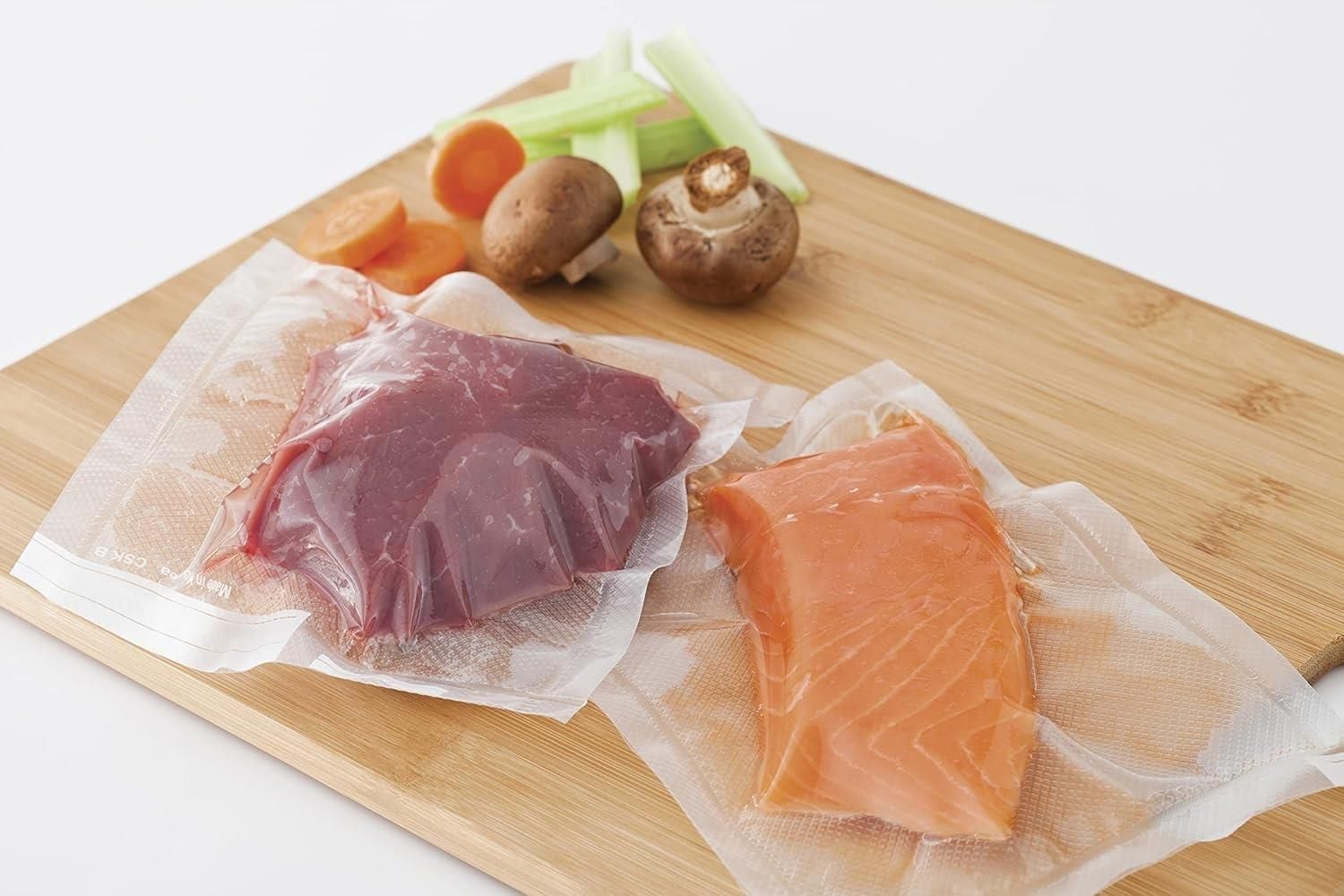 Дозволяє зберегти ваші продукти свіжими до 8 разів довше. Пакети багаторазові, тож їх можна не викидати після використання. Щоб запобігти забрудненню, не використовуйте пакети повторно після зберігання сирого м’яса, сирої риби або жирних продуктів.
