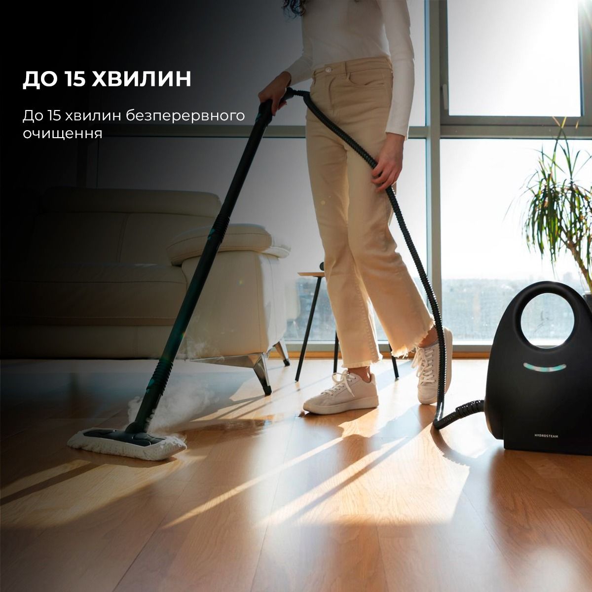 До 15 хвилин безперервної роботи дає змогу з великою потужністю та мінімальною витратою пари провести якісне прибирання будь-якого приміщення.