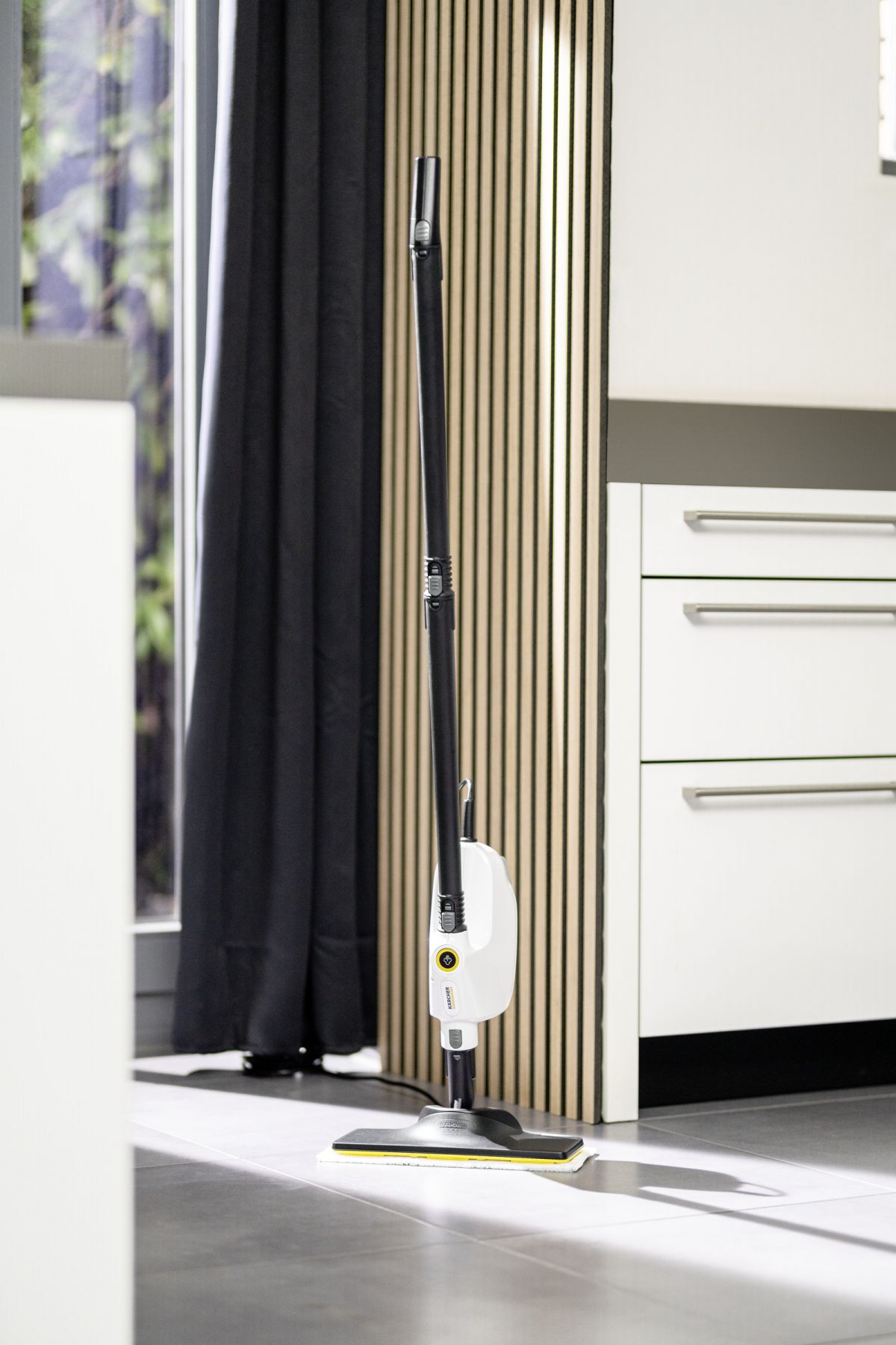 Компактна парова швабра «4 в 1» SC 1 Multi & Up забезпечує глибоке очищення матеріалу без використання хімічних засобів і може використовуватися або як багатофункціональний ручний пароочисник, або завдяки насадкам для підлоги EasyFix Large, що входять до комплекту, як універсальна парова швабра «3 в 1 », що робить її ідеальним побутовим приладом. Можливість використання у 3 різних положеннях (верхнє, середнє та нижнє) гарантує максимальну адаптацію до існуючих вимог. У процесі глибокого очищення з використанням пароочисника Karcher усуваються до 99,999% вірусів та 99,99% поширених у побуті бактерій на твердих поверхнях. Завдяки компактній та ергономічній конструкції апарат неймовірно зручний у використанні та при цьому займає мінімум місця при зберіганні. SC 1 Multi & Up за 30 секунд переходить у режим готовності та просто заповнюється водою завдяки знімному бачку – без витрат часу на очікування та вимушених перерв у роботі. Змінний картридж для захисту від накипу забезпечує автоматичне видалення вапняного нальоту та збільшення терміну служби у 5 разів. Світлодіодний індикатор з панеллю керування спрощує та полегшує використання апарата. На дисплеї постійно відображаються різні режими, наприклад нагрівання, готовність до використання, режим пароутворення, а також необхідність заміни картриджа.