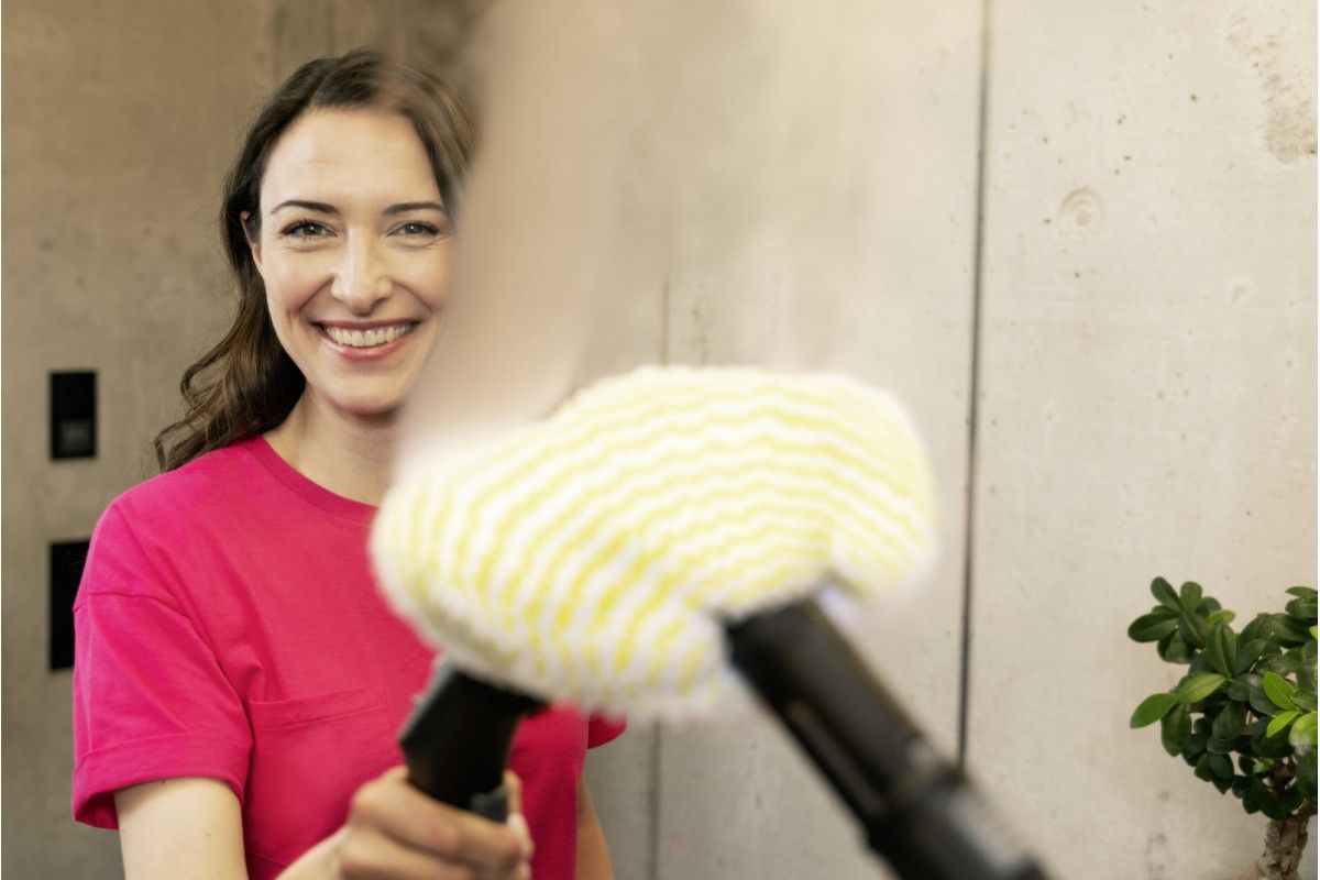 Karcher SC 4 Deluxe Iron – потужний пароочисник із тиском 4,0 бар. Знищує 99,99% вірусів і бактерій, ефективно очищує тверді поверхні, кухонні плити, витяжки, плиткові шви. Знімний бачок дозволяє поповнювати воду без перерв. Оснащений вбудованим відсіком для приладдя, світлодіодним індикатором, 3-ступінчастим регулятором пари та ергономічною насадкою EasyFix із липучковим кріпленням серветки. У комплекті парова праска, що скорочує час прасування до 50%.