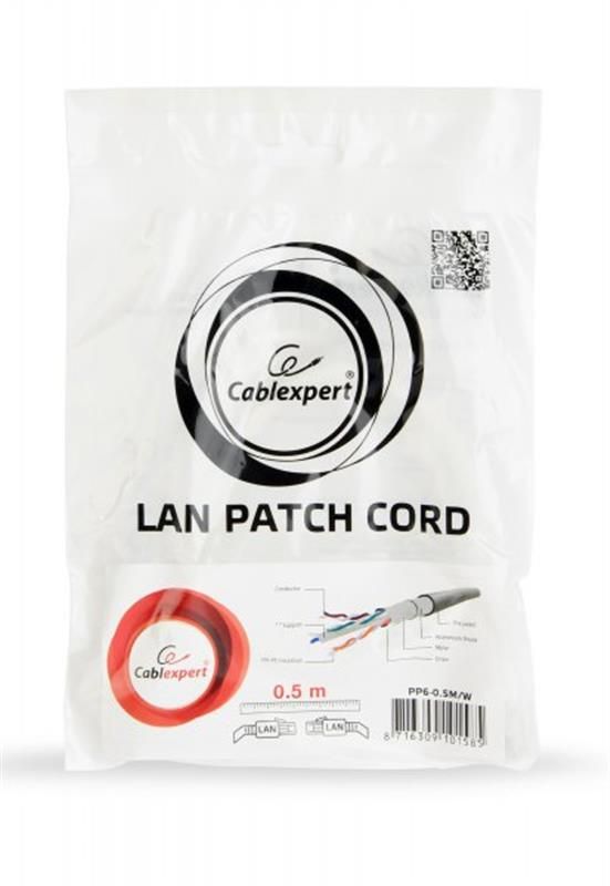 Патч-корд Cablexpert (PP6-0.5M/W) FTP, литий, 50u "штекер із засувкою, 0.5 м, білий
