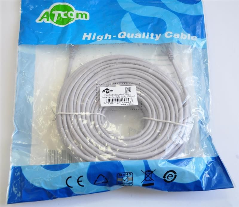 Патч-корд Atcom 30 м (4964) UTP, 30 м, 5е cat ідеально підійде для підключення ноутбуків, комп"ютерів і плеєрів з мережевим обладнанням. Він допоможе Вам організувати надійне і якісне з"єднаня між пристроям, що є необхідним і важливим атрибутом мереж зв"язку в офісі або вдома.