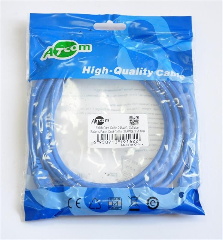 Неекранований U / UTP патчкорд категорії 5, c 8-ми контактними модульними вилками RJ45, призначені для комутації в розподільному вузлі або на робочому місці. Контакти модульної вилки RJ45 покриті шаром золота товщиною 50 мікродюймів. Результат - чудові параметри передачі; тривалий опір корозії від вологості та екстремальних температур; довговічність - не менше 750 циклів з"єднання вилка / гніздо. Даний кабель відноситься до категорії 5, що означає, що це 4-парний кабель із смугою частот 100 МГц, який використовується для побудови локальних мереж та для прокладення телефонних ліній, а також підтримує швидкість передачі даних до 100 Мбіт / с при використанні 2 пар.