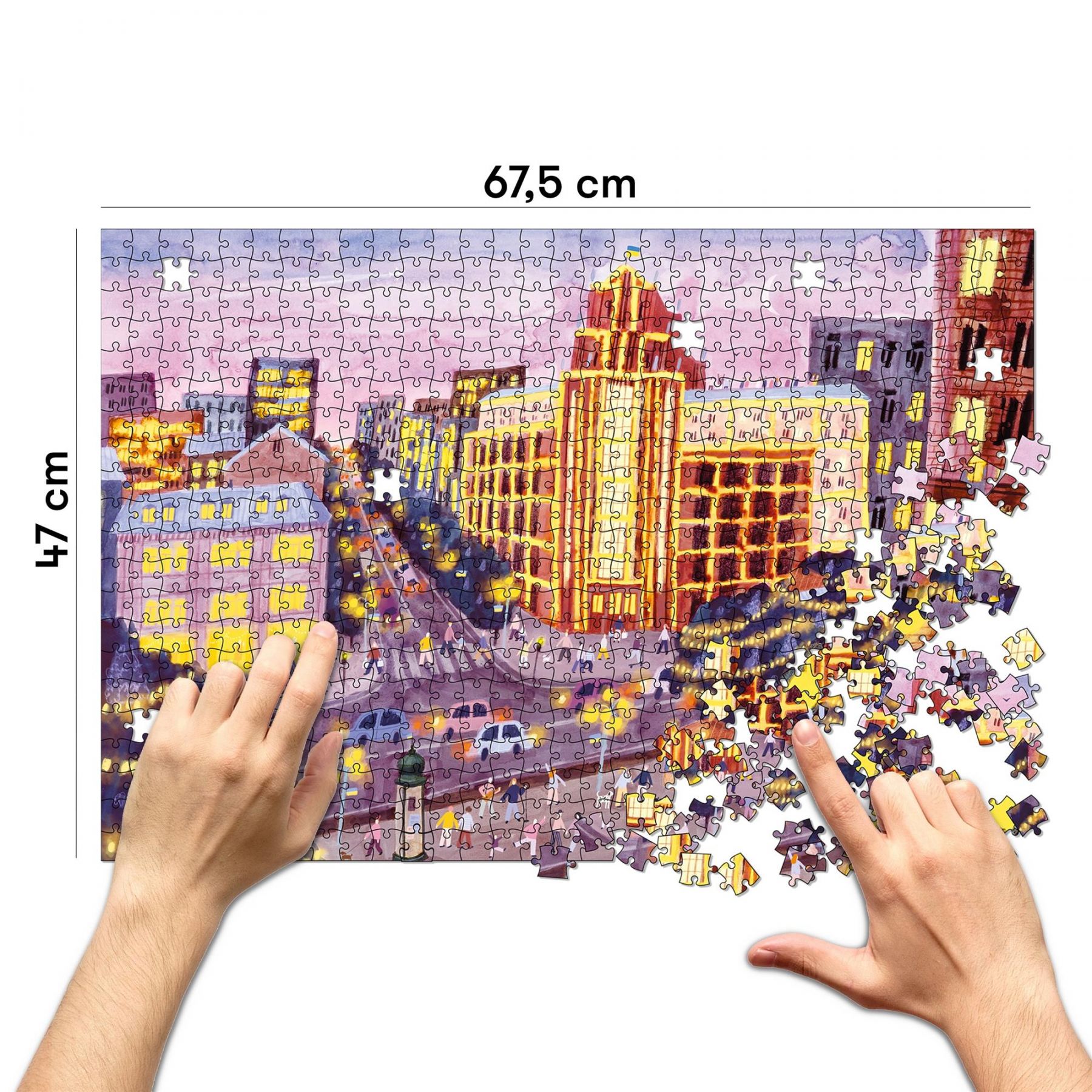 Пазл «Київ вечірній» — це наша особиста ода любові Києву. Його затишним вогникам та неймовірним людям. Його швидкому темпу життя та вмінню насолоджуватися моментом одночасно. Чи то моментом прогулянки під каштанами, чи то моментом, коли ви просто сидите на лавці та розглядаєте людей