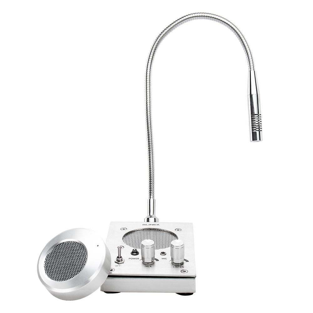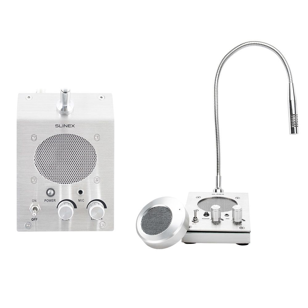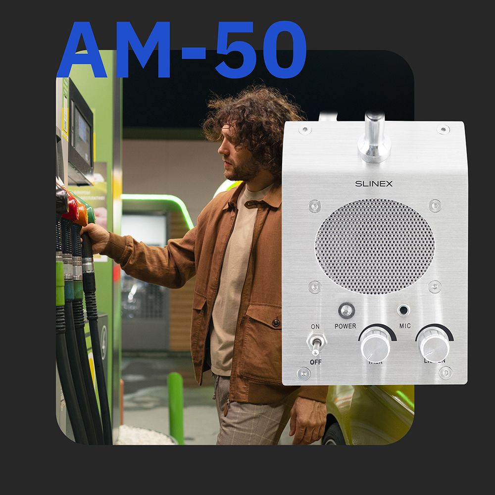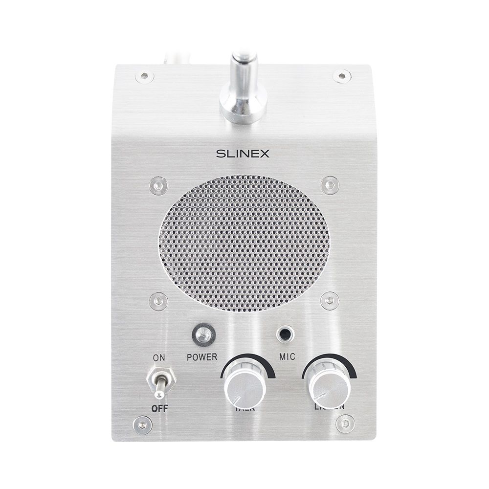 Slinex АМ-50 – це переговорний пристрій, що складається з базової станції та зовнішнього терміналу. Пристрій призначено для здійснення аудіозв’язку між оператором та абонентом. Такі прилади гарно підходять для використання в банках, автозаправних комплексах, державних та інших установах.