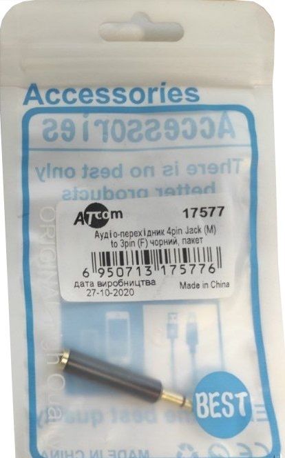 Перехідник Atcom (AT17577) 4pin Jack (M) to 3pin (F) чорний.