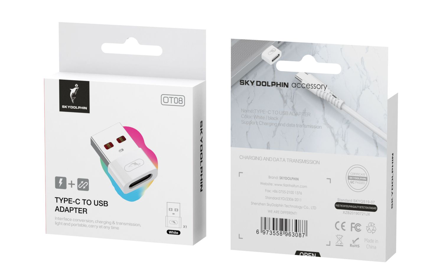 Перехідник SkyDolphin OT08 Mini USB Type-C - USB (F/M), white (ADPT-00032)