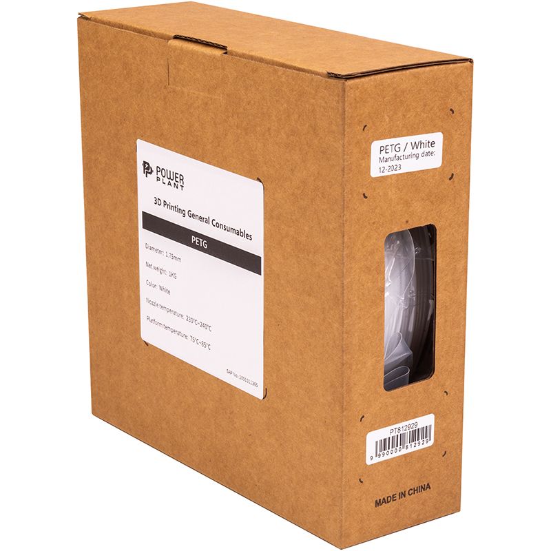 PETG-пластик PowerPlant Filament для 3D-принтера 1.75 мм 1 кг, білий (PT812929)