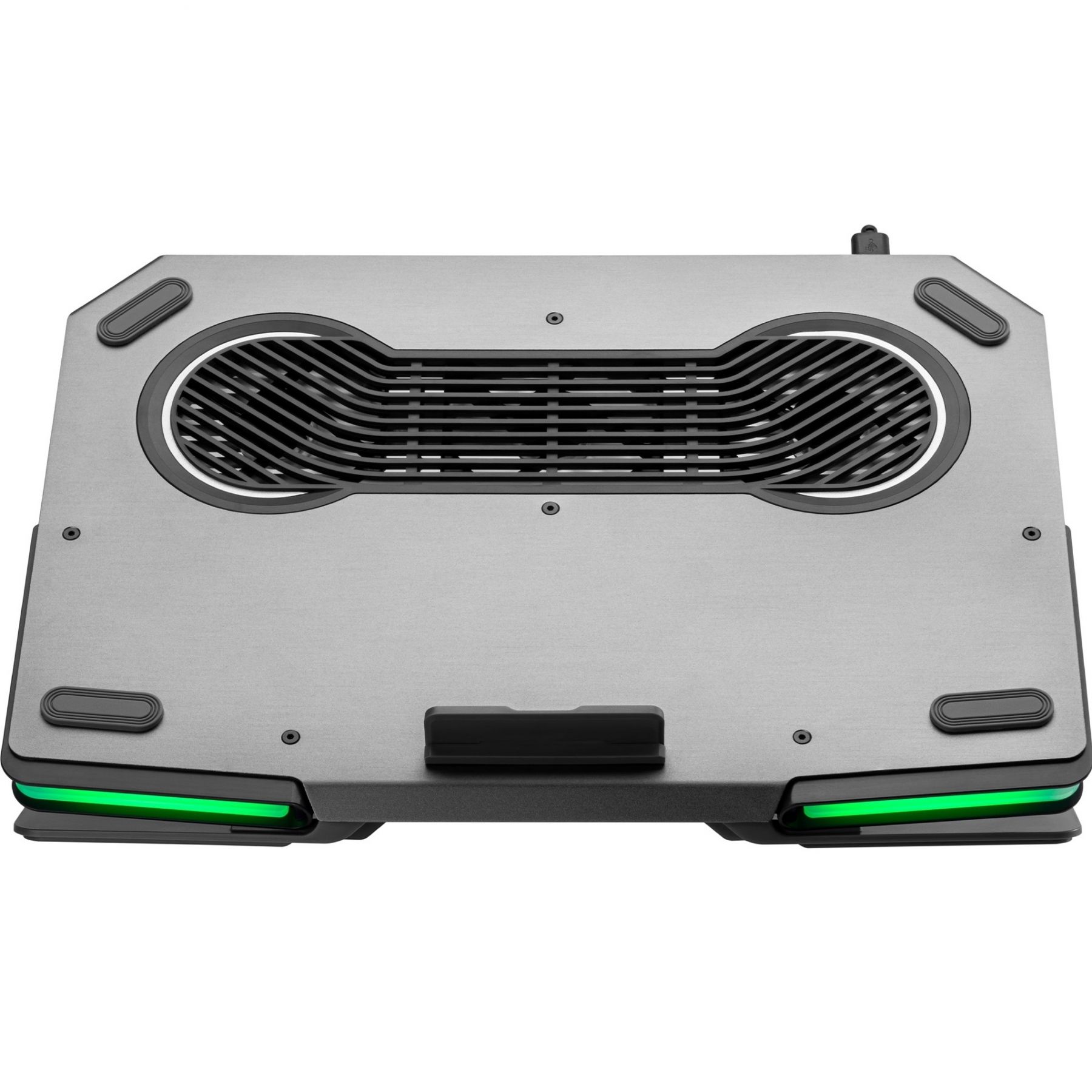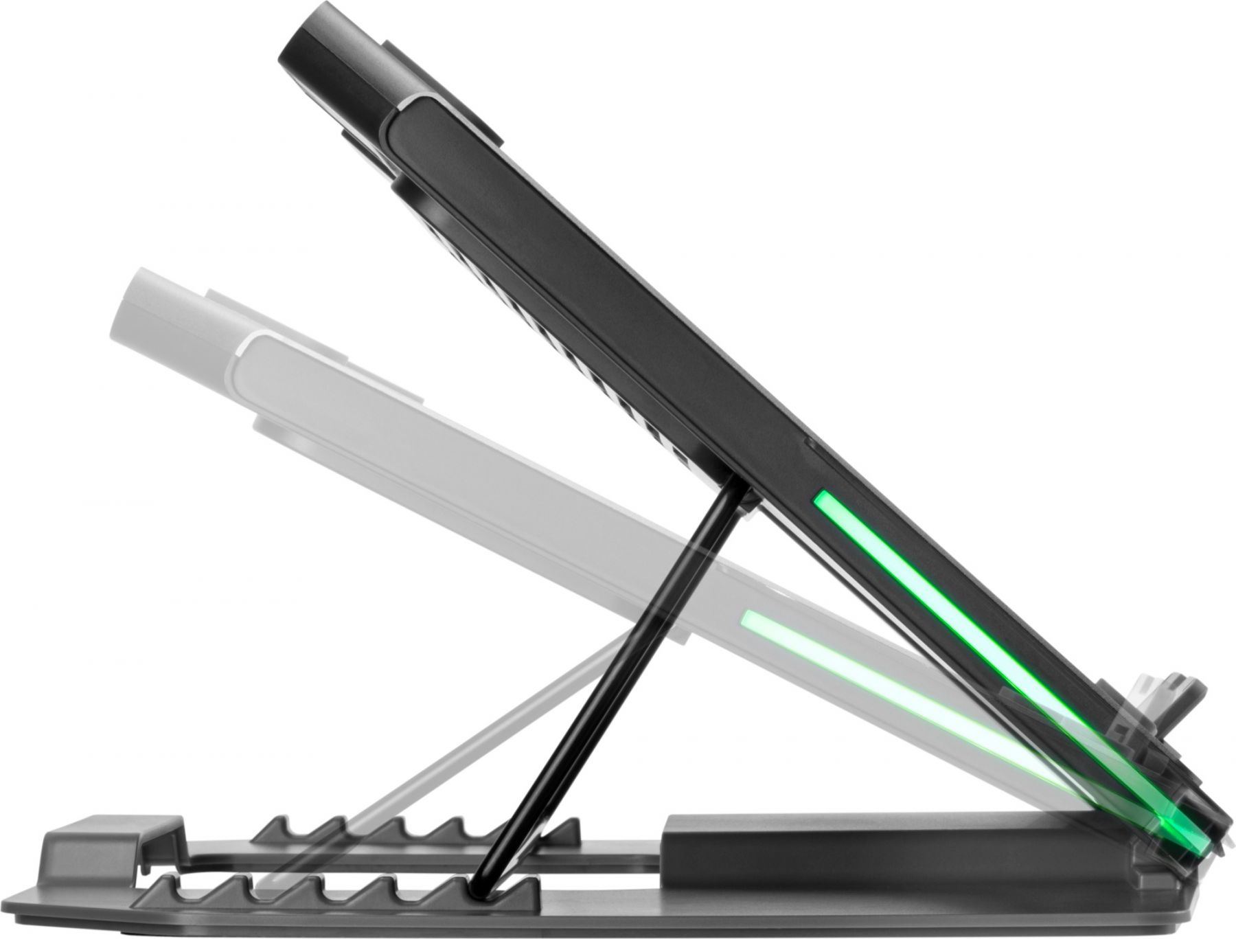 Охолоджуюча підставка для ігрового ноутбука CP1540 включає RGB-підсвічування з динамічними світловими ефектами. Завдяки 3 вентиляторам охолодження підставка забезпечує всебічний захист від тепла максимум для 17-дюймових ігрових ноутбуків вагою до 5 кг. 5-рівневе регулювання висоти знімає всю втому під час довгих годин гри. 1 USB-порт також увімкнений для додаткової ігрової периферії підключення.