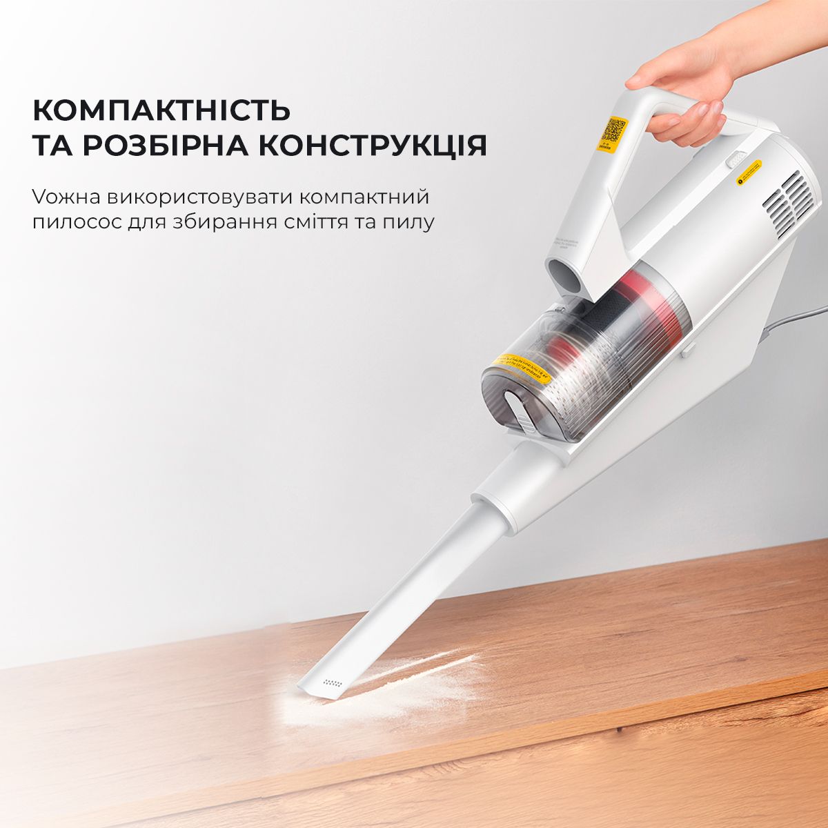 Вихор засмоктує та затримує дрібний пил.
