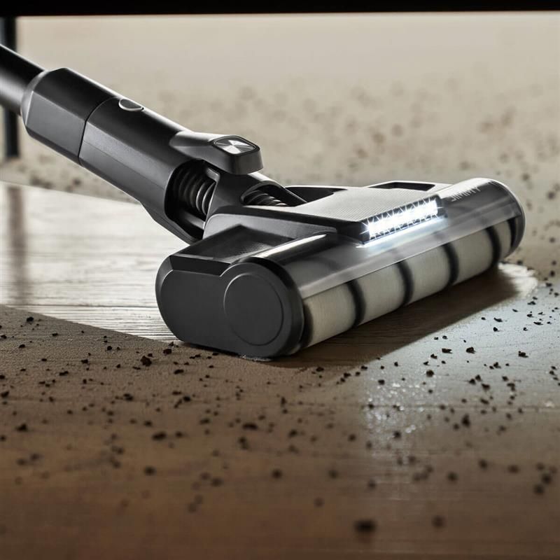 Насадка для підлоги оснащена 6 світлодіодами, що автоматично загоряються при включенні. Значно покращено здатність очищення темних ділянок під ліжком, столом. Тепер пилу в темряві нема куди сховатися.