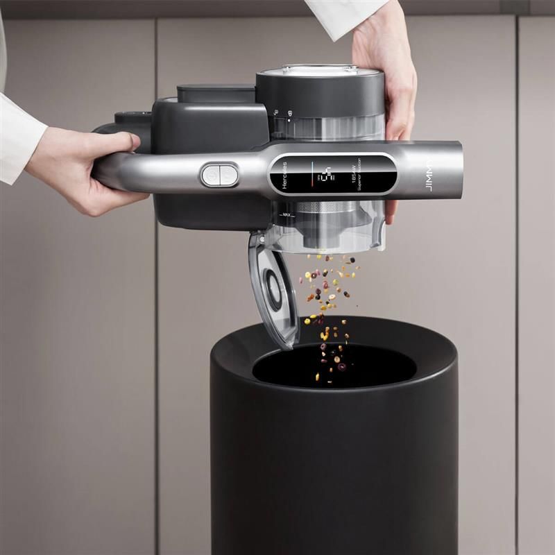 Запатентована компанією JIMMY технологія горизонтального подвійного циклону ефективно відокремлює пил від повітря та знижує втрати всмоктування. Збирає великі частинки і до 99,9% дрібного пилу, уникаючи при цьому вторинного забруднення повітря.
