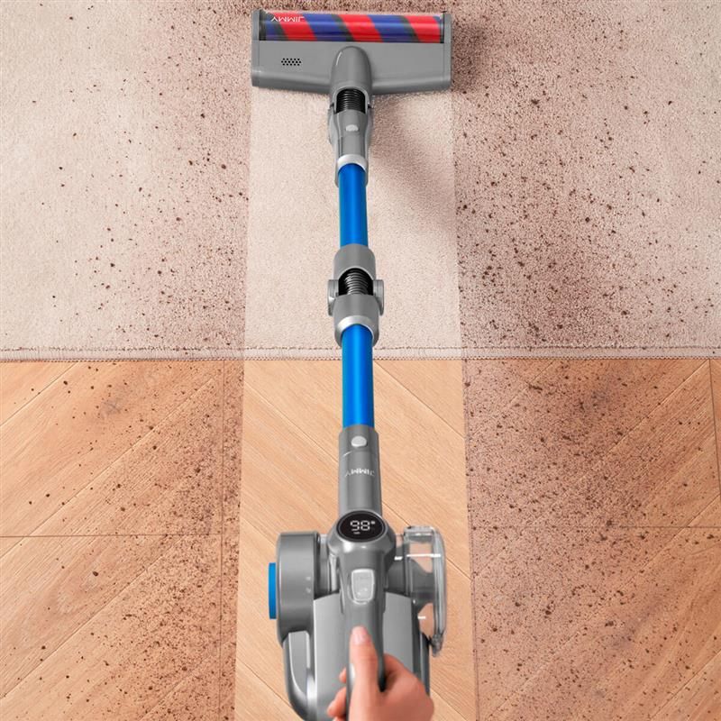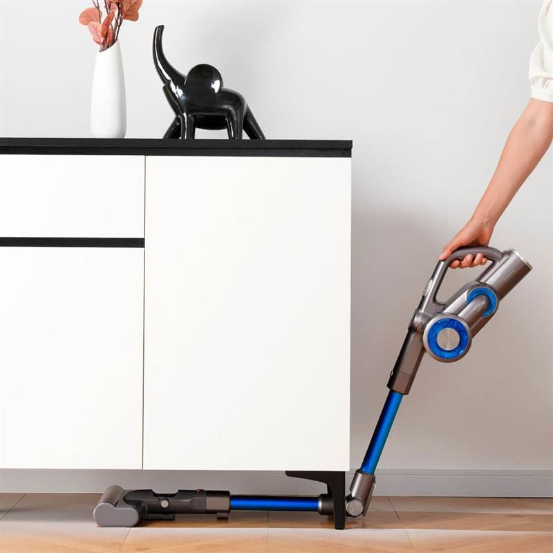 Ручка розташована поверх пилозбірника, мотора та акумулятора. Завдяки такій конструкції під час прибирання ваша рука не втомлюватиметься, а прибирання стане приємнішим.