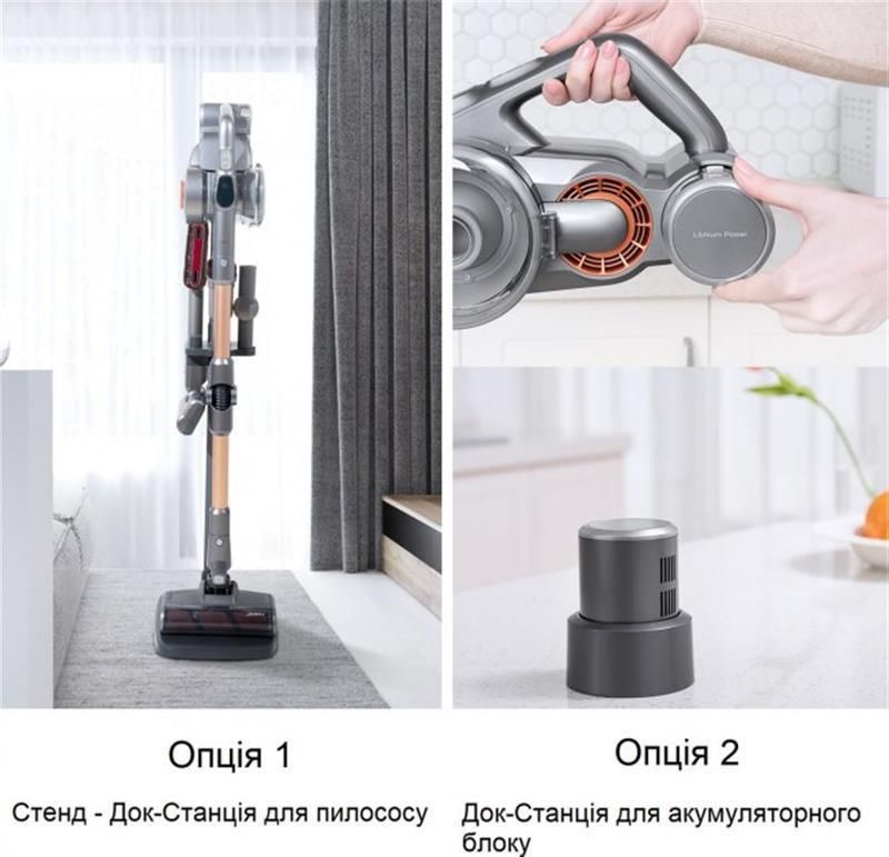 Для зручного розміщення і зберігання JIMMY H9 PRO з усіма насадками призначений підлоговий стенд. Він же є док-станцією, на якій пилосос заряджається. Ніяких зайвих елементів - все компактно і завжди в одному місці.