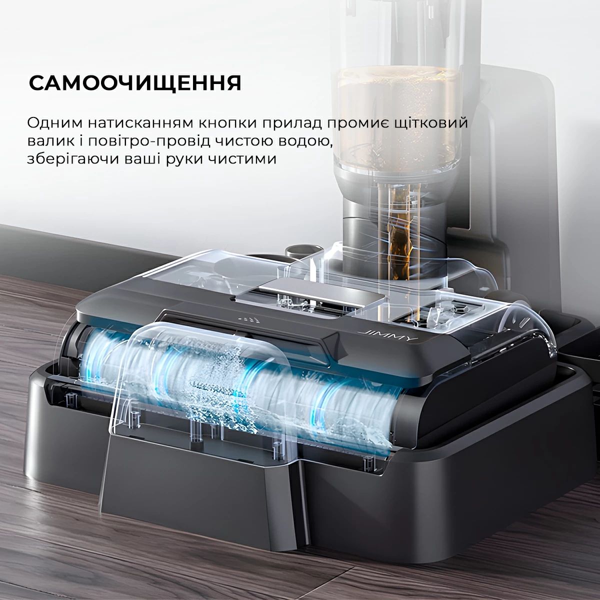 JIMMY HW9 Pro може повертатися майже на 180 градусов, щоб лежати абсолютно рівно, щоб без зусиль вбити в важкодоступних місцях. Легко чистить труднодоступные поверхні пола під диваном, ліжком, стулом і т.д.