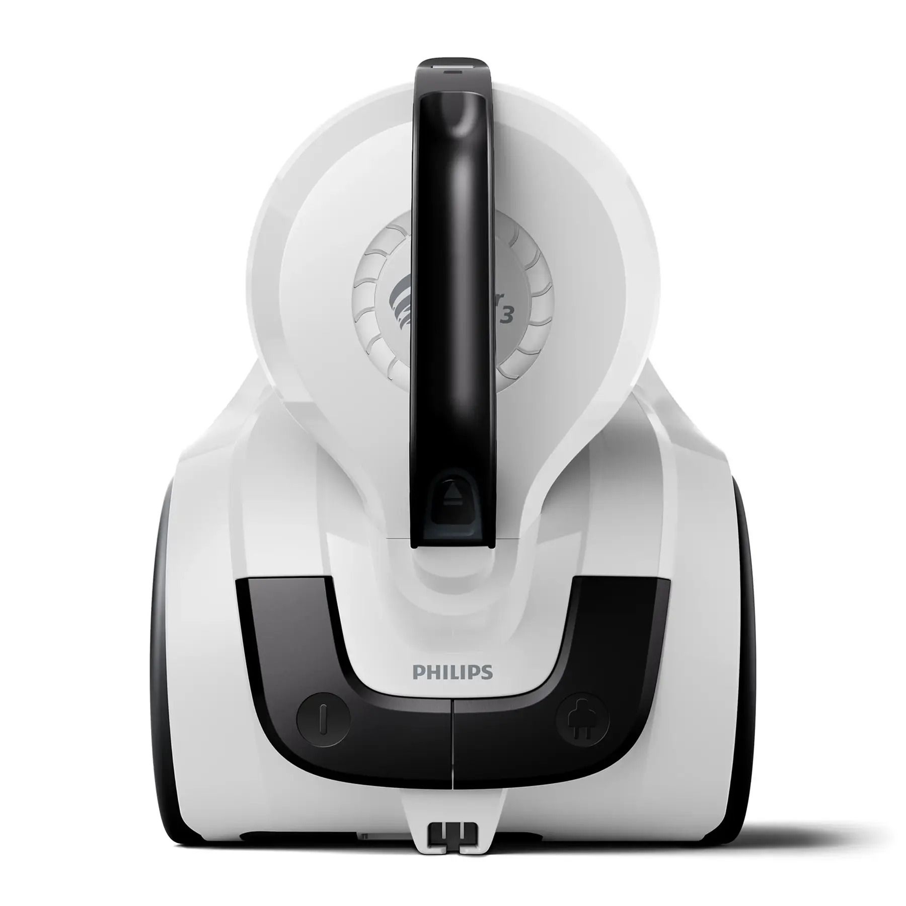 Заощаджуйте цінний простір для зберігання завдяки компактній та легкій конструкції. Пристрій легко сховати в шафу або комору, а також він досить легкий, щоб його можна було легко поставити на полицю. 3-ступінчаста система фільтрації затримує 99,9% частинок за допомогою фільтра двигуна, який можна мити. Таким чином, захоплені частинки гарантовано залишаться всередині контейнера для пилу, а ваше житлове середовище буде свіжим і здоровим.