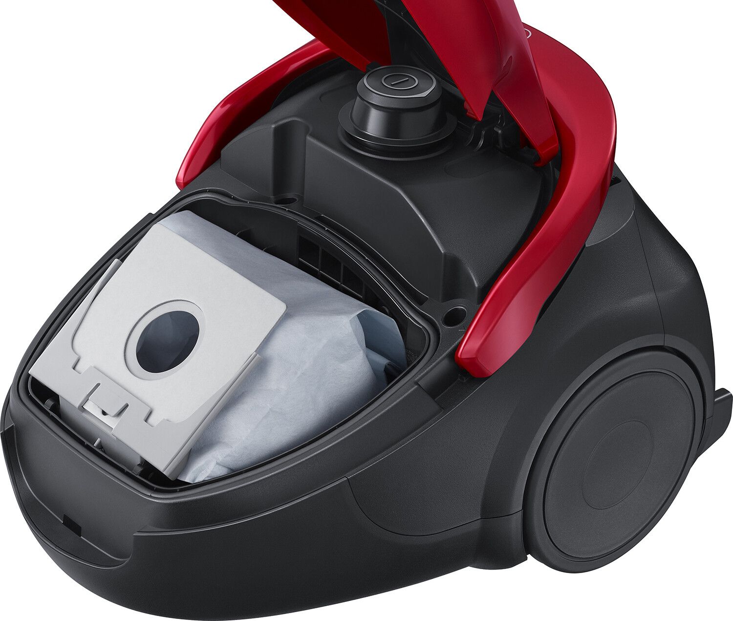 Дана конструкція має мішкову будову, за рахунок чого вона досить невимоглива в догляді. Пилозбірник у вигляді мішка має обсяг на рівні 2.5 л, за рахунок чого забезпечується досить тривалий збір сміття без частого спорожнення. Проста система контролю заповнення пилозбірника дозволить відстежувати по індикатору на ручці, коли необхідно буде спорожнити резервуар. При цьому, якщо ви забули встановити мішок, то кришка пилососа просто не закриється, щоб ви не почали збирання без мішка.